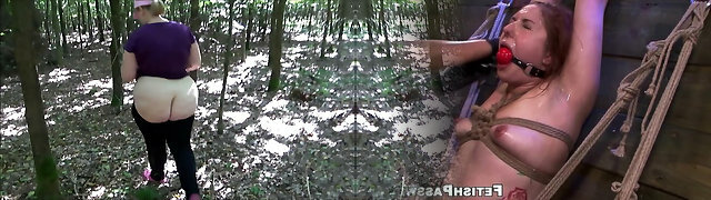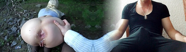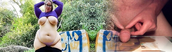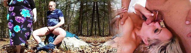 Outdoor amateur fucking - BBW slut is romped doggystyle in the woods and gets mouth utter of cum