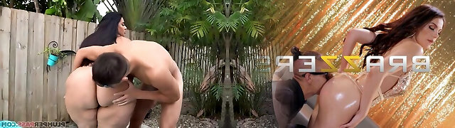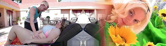 Hefty brunette, Sofia Rose is having casual sex next to the swimming pool, during the day