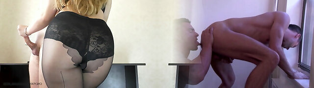Teen with Big Bootie Fucked in Pantyhose - Blowjob, handjob and Ass Job