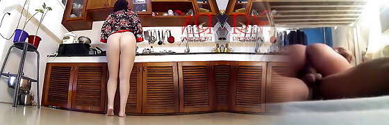 Big Butt Latina BBW Wears Stocking and Fucks in Kitchen