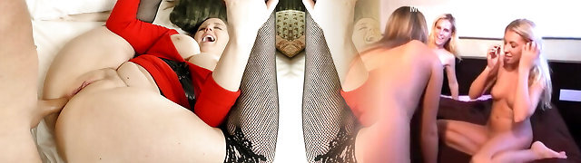 Jasmine Black along with Stacey and Sammy drilled by a hard man rod