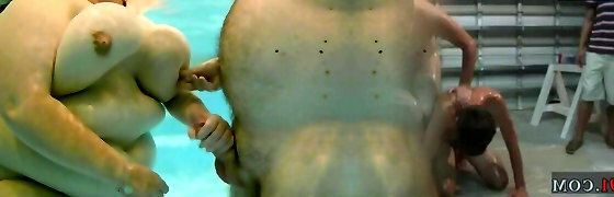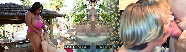 Threesome Plumper orgy by the pool with 2 BBW dominatrices