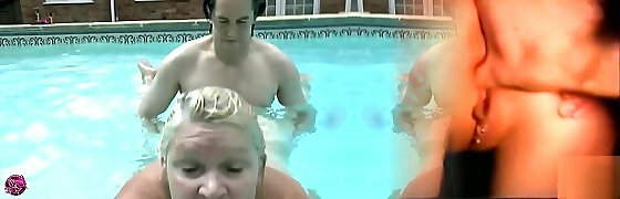 Cougar Fucked in all postures in the pool, huge dildo and handjob underwater