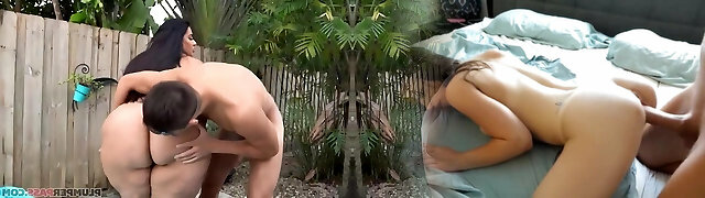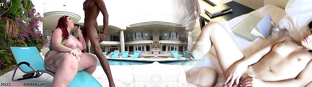 It's the pool boy’s lucky day, he fucks 2 big white BBW damsels
