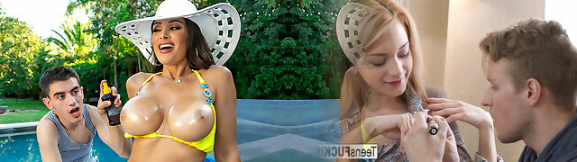 ExxxtraSmall Petite latina teen rides big weenie by the pool