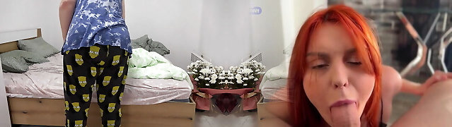 Big cock stepbrother cums on stepsister's cock-squeezing pussy