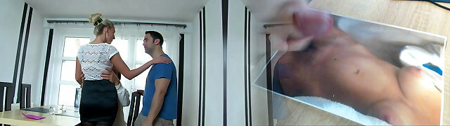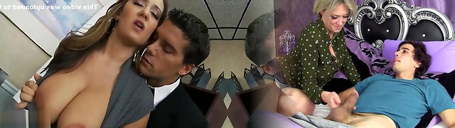 Hot Step Mother Seduces Step Sonny in the office, showcases him milky nipples and Makes big cock Handjob