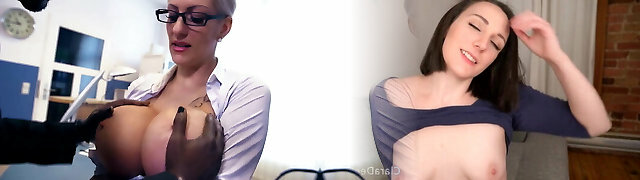 Ample saggy tits secretary and her BBW girlfriend