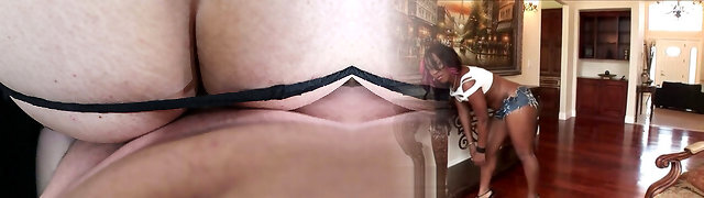 French Maid wraps her thick hips around her boss while he fucks her pussy nice and deep