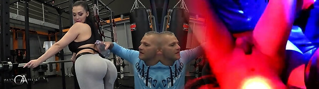 Pretty sporty babe with nice yam-sized ass loves plumbing doggy in the gym