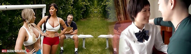 Sexy curvy sporty honies are happy to enjoy threesome outdoors (FFM)