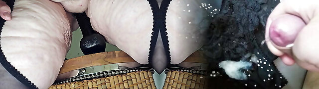 Wacky granny with huge thick ass pokes her honeypot with dildo